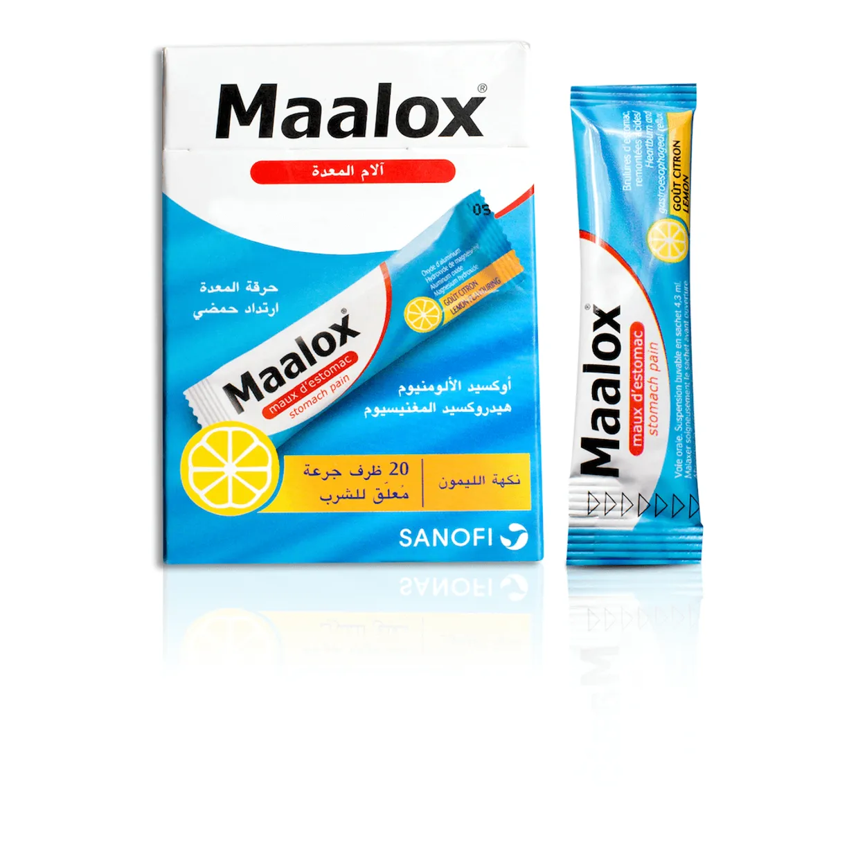- مالوكس اكياس (maalox sachets) هو دواء مضاد للحموضة والانتفاخ يخفف من حرقان المعدة وعسر الهضم حيث يحتوي على عدة مكونات تقلل حمض المعدة.